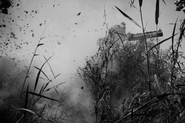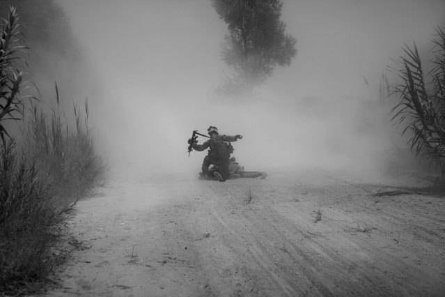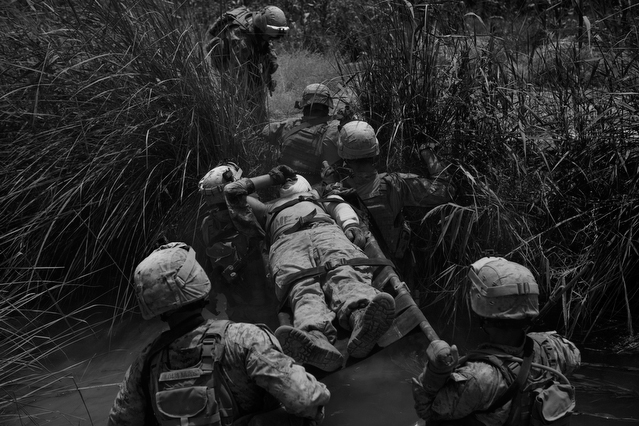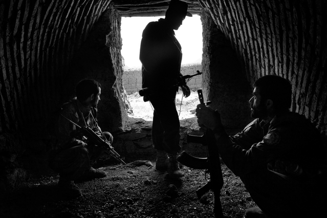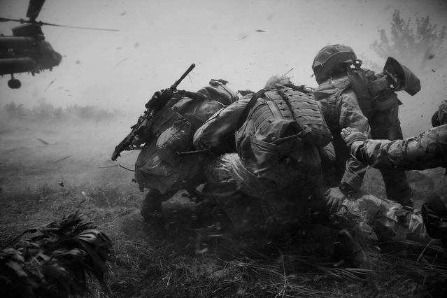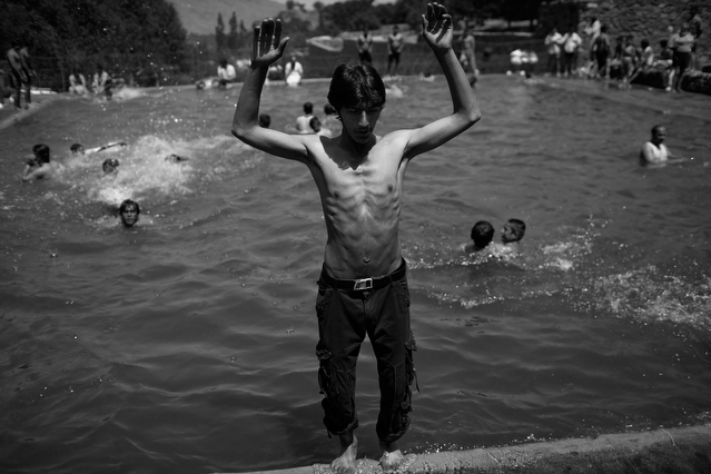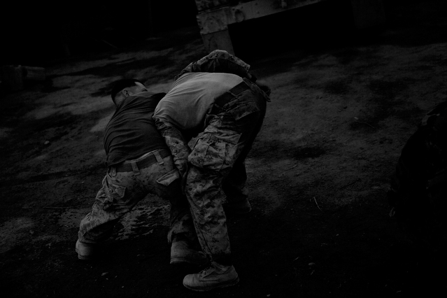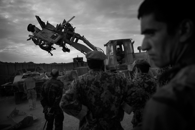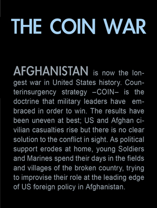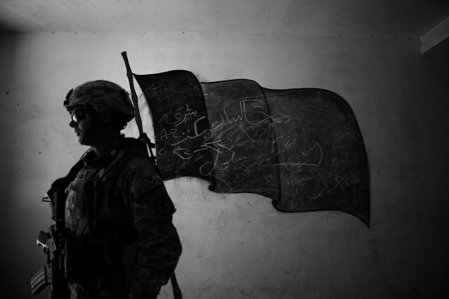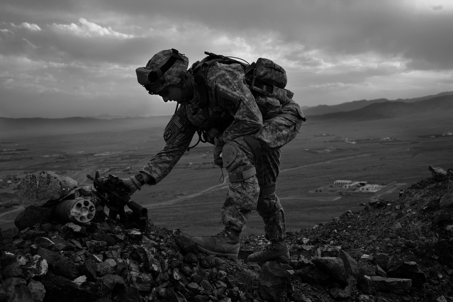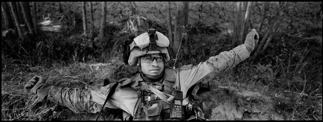 | A search in order to pass a US position, the Onkhai Valley. | A dog lunges at a soldier during a house search in Lachikhel, Tangi Valley. | Afghan policeman at his post, Kandahar City. | A boy watches Spc. Don Ezra Plemmons buy supplies, Sayedabad. | Marines on patrol near COP Turbett, Marjah. | Lt. Stuhler has a heart to heart with Haji Najibullah. | Cpt. Zepeda makes things clear for Haji Bozgul during a shura at COP Turbett. | A villager condemns a US air assault on his community, Lachikhel. | Lnc. Cpl. Stephanie Robertson and an Afghan Police admirer, Kuru-Cherey bazaar, Marjah. | An elderly man argues with Sgt. Timothy Stokes during a patrol in Marjah. | A pair of brothers cry as US soldiers take their father away as a detainee. | Shir Gul washes the cars of Kabulis for money on the shores of Qargha reservoir. | A soldier from the 4/25, 10th Mountain, at a school in Mohammed Agha, Logar province. | Soldiers at rest in the Arghandab Valley. | An Afghan Policeman, asleep outside of Kandahar City. | The Arghandab Valley sweeps to the northwest of Kandahar. | Afghan folks swim in the evening in the Qargha reservoir. | Samiullah, 12, and his father Ismail beg for alms on a footbridge in Kabul. | Afghan women shopping near the Kut-E-Sangi market, Kabul. | Cutting a flip into the pool, Paghman. | Day laborers share a breakfast of tea and naan, Kabul. | An evening swim in one of the US built canals, Marjah. | Two boys, and a reflection, Paghman. | Afghan men swim and roughhouse around the pool. | Lightbulb store in the Old City, Kabul. | Motorcycle pride. | Abdul Mohid and other laborers in their transient hotel after a long day. | Elders listen to an appeal for volunteers for a local militia in Zabulat, Wardak. | Afghan police wait out a rain storm in a cellar during an operation in the Tangi Valley. | Afghan soldiers watch the disposal of one of their destroyed vehicles, Marjah. | Photos of Taliban found on a house raid, Chor-Cherey, Marjah. | An empty seat next to a house, a sign of bad atmospherics, Marjah patrol. | Women and children gather as Marines search their compound. | Afghan soldiers on patrol in the Tangi Valley with flowers in their hair. | Patrolling in sandals on a hill above Logar Province. | Night falls on JSS Commanche, Tangi Valley, Wardak Province. | Staff Sgt. Zamora leads a fire team on patrol in Marjah. | 1st Platoon Fox Co. kills a chicken the hard way for dinner at Chor-Cherey bazaar, Marjah. | Marines wrestle in the evening, Chor-Cherey bazaar. | Torgusen, Panilaitis, Vittitow and Person gather after the evening patrol, Marjah. | Waiting out a mortar attack at FOB Terra Nova in the Arghandab Valley. | Spc. Branch shoulders an AT-4 before a night patrol, Babur, Arghandab valley. | Sgt. Stokes conducts a pre-mission brief before a patrol, COP Turbett. | Heading out to man an all night checkpoint, COP Babur. | Deployment reading rests on a wubby in the Arghandab valley. | 2nd. Lt. Hall with an improvised rocket aimed at his base, Logar Province. | Sgt. Thomas Burke conducts a search during an air assault in the Tangi Valley. | Pfc. Tyler Schell on patrol at dusk, Tangi Valley. | Cpl. Manuel Jimenez, an hour before the blast. | Doorway to a home, Marjah. | Patrolling from COP Turbett, Marjah. | Coming up out of cover, Kuru-Cherey patrol. | An Afghan Army soldier attacks a civilian after a firefight, Marjah. | Lnc. Cpl. Mullins fires a LAW rocket at insurgents during a fight in Marjah. | A pull string, attached to a live IED left after a firefight, Chor-Cherey, Marjah. | Cpl. Matthew Griffith struggles to communicate without an interpreter during a house search. | A letter from Marine Lnc. Cpl. Kaleb Lacy's fiance, Chor-Cherey. | Lt. Col. David Flynn's helmet and gloves, with the Blackheart insignia, the Arghandab Valley. | Lnc. Cpl. Kaleb Lacy runs toward the shooting after a firefight breaks out near Chor-Cherey bazaar. | Cpl. Eric Hopp rushes to save Cpl. Manuel Jimenez after he is hit with an IED on patrol in Marjah. | Cpl. Jimenez is carried across the canal. He lost his left arm in the blast. | Marines protect Jimenez from the rotor wash during his medevac, Marjah. | Lt. Jeff Turner, left, and Lt. Kevin Kilmartin during a briefing at COP Turbett. | Soldiers salute at the ramp ceremony for Sgt. Patrick K. Durham and Spc. Andrew J. Castro killed in Babur. Kandahar Air Field. | Lt. Matthew Stuhler sits up with Afghan soldiers after they lose seven of their own, Marjah. |