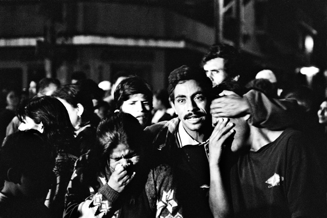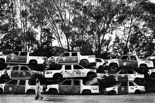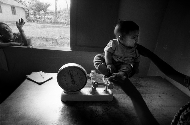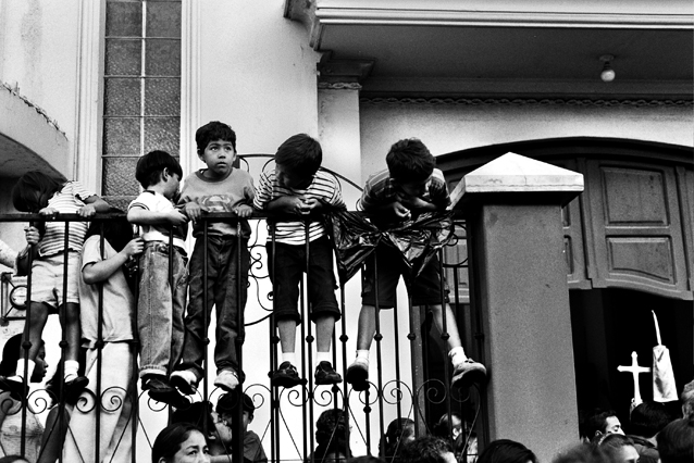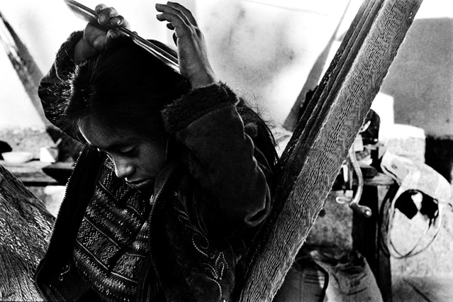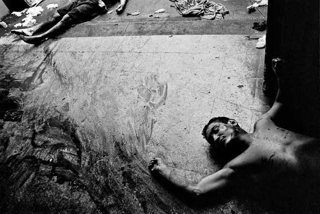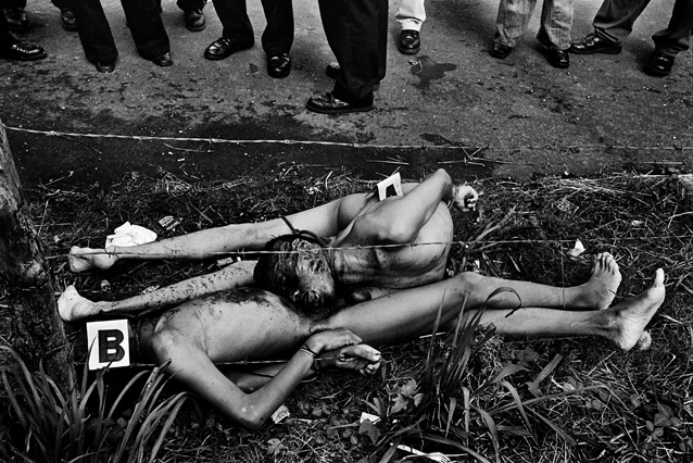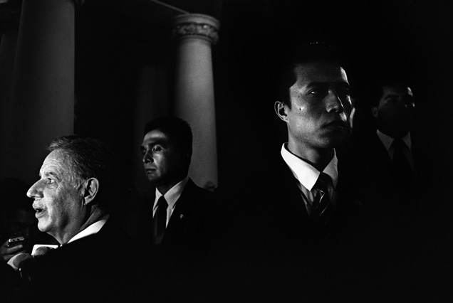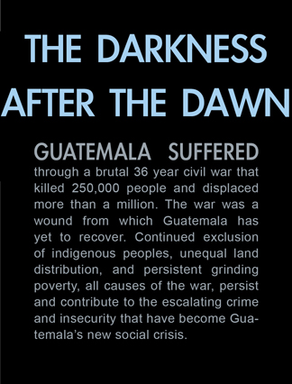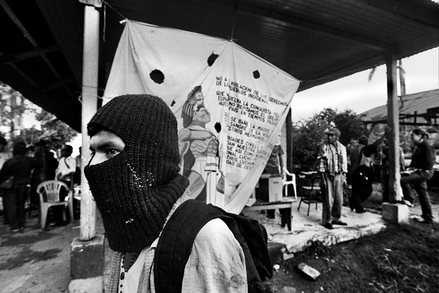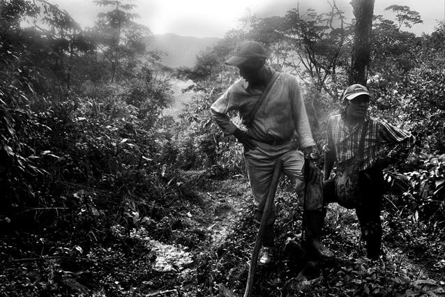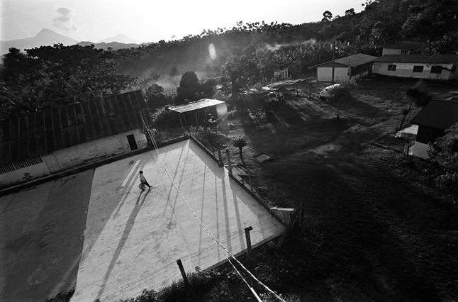 | Children dressed as clowns beg in Guatemala City. | Morning breaks, Santa Anita la Union. | Melissa does her hair before leaving for school. | Rainy afternoon in the Ixil triangle. | In the highlands of Quiche. | Augustina weighs her child in a bakery scale. | Campesinos search for the graves of their relatives, Estrella Polar. | Wismer swings at a pinata on his birthday. | Listening to the forensic anthropologists. | Fernando's UN demobilization card. | Anthropologist Danny Guzman holds a jawbone during an exhumation, Comalapa. | Exhumed skull in a former army base. | Families of the disappeared watch the exhumation. | Moruners carry the coffin of a victim of the war, San Pedro Jocopilas. | Burning a rat infested mattress. | Murder victim, zone 10, Guatemala City. | The blind accordion player, Sixth Avenue. | Marina Sinar sings and prays for her missing son. | Women cry over the body of their slain father. | Carnival night, Todos Santos. | Otilio waits with his friends for school to start. | Boys watch the funeral for a murdered priest. | Watching telenovelas at home, back from Oakland. | A woman is escorted by soldiers from an evicted settlement, Finca El Maguey. | Squatter, Nuevo Palmar. | Sisters sit in the ruins of their former home. | A squatter builds his shack from plastic sheets, Rancho Tres Hermanos. | Burning the fields during the sugar cane harvest. | Valerio, a guerilla for 17 years of his life. | Running the horses for the Day of the Dead. | Watching the drunks. | Night falls on zone 1, Guatemala city. | Women walk by a wall of wrecked police trucks. | Victims of the social cleansing. | Parishioners mourn the death of their priest. | President Berger and bodyguards. | Evening in the shantytown, El Mezquital. | Victim of the riot at El Hoyon in the morgue, Escuintla. | Maria and the disappearance of her son. | Members of the Mara 18, El Hoyon prison. |